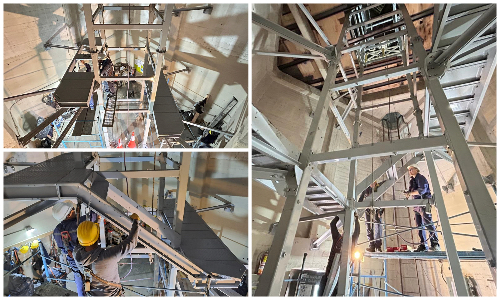 Además, se realizó la adecuación del piso para la colocación de una escalera paralela que acompañará a la estructura del ascensor; que fue previamente armado en fábrica. La estructura del elevador va atornillada, lo que permitirá que sea desinstalada en su totalidad en caso de que sea necesario.
